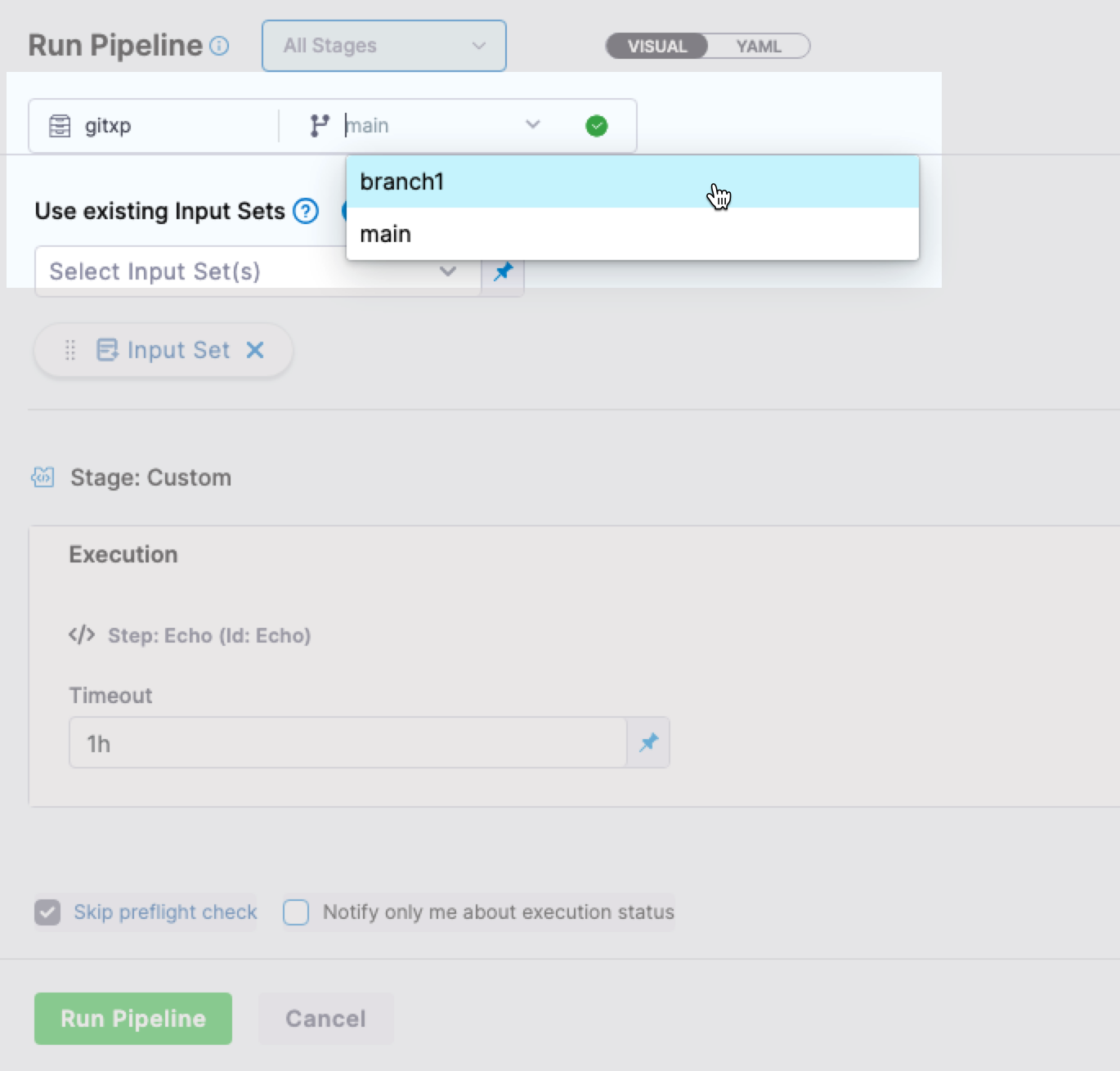 • You can select the branch from which you want to run the pipeline.